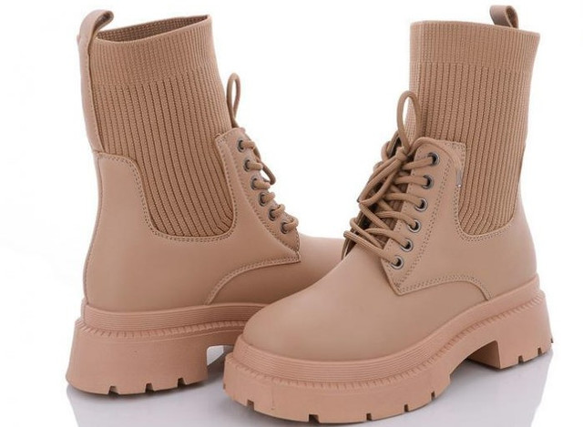 Також демісезонні високі черевики на тракторній підошві можна зустріти з трикотажними дов'язами, що імітують колготи.