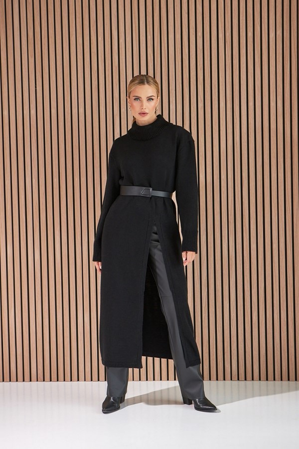 Чорна сукня в'язана поло жіноча тепла з розрізом максі