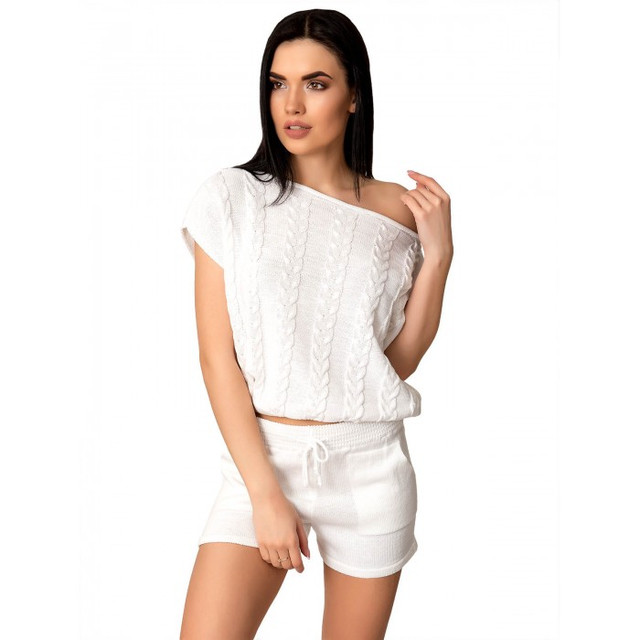 В'язаний брючний костюм жіночий з широкими штанами палаццо білий