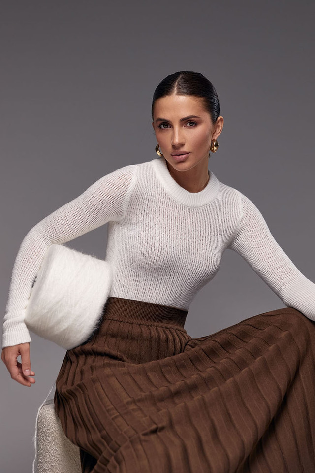 - лаконічний лонгслів стилізує образ зі спідницею