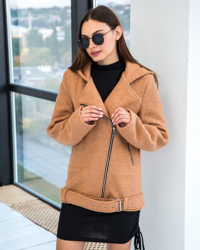 - компактна стильна демі куртка на блискавку та комір-стійку з оздобленням по краю білою еко-альпакою утеплена для початку весни